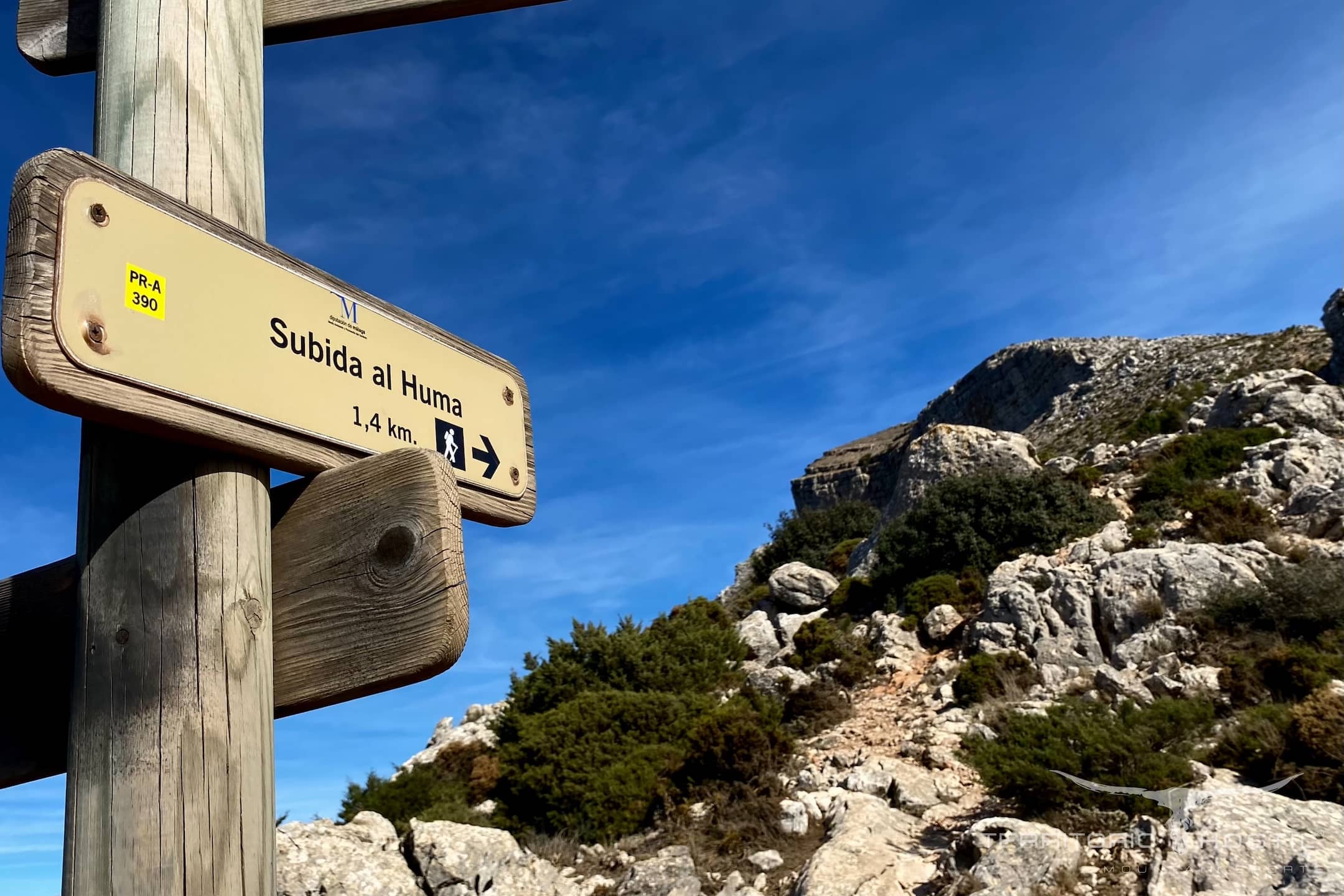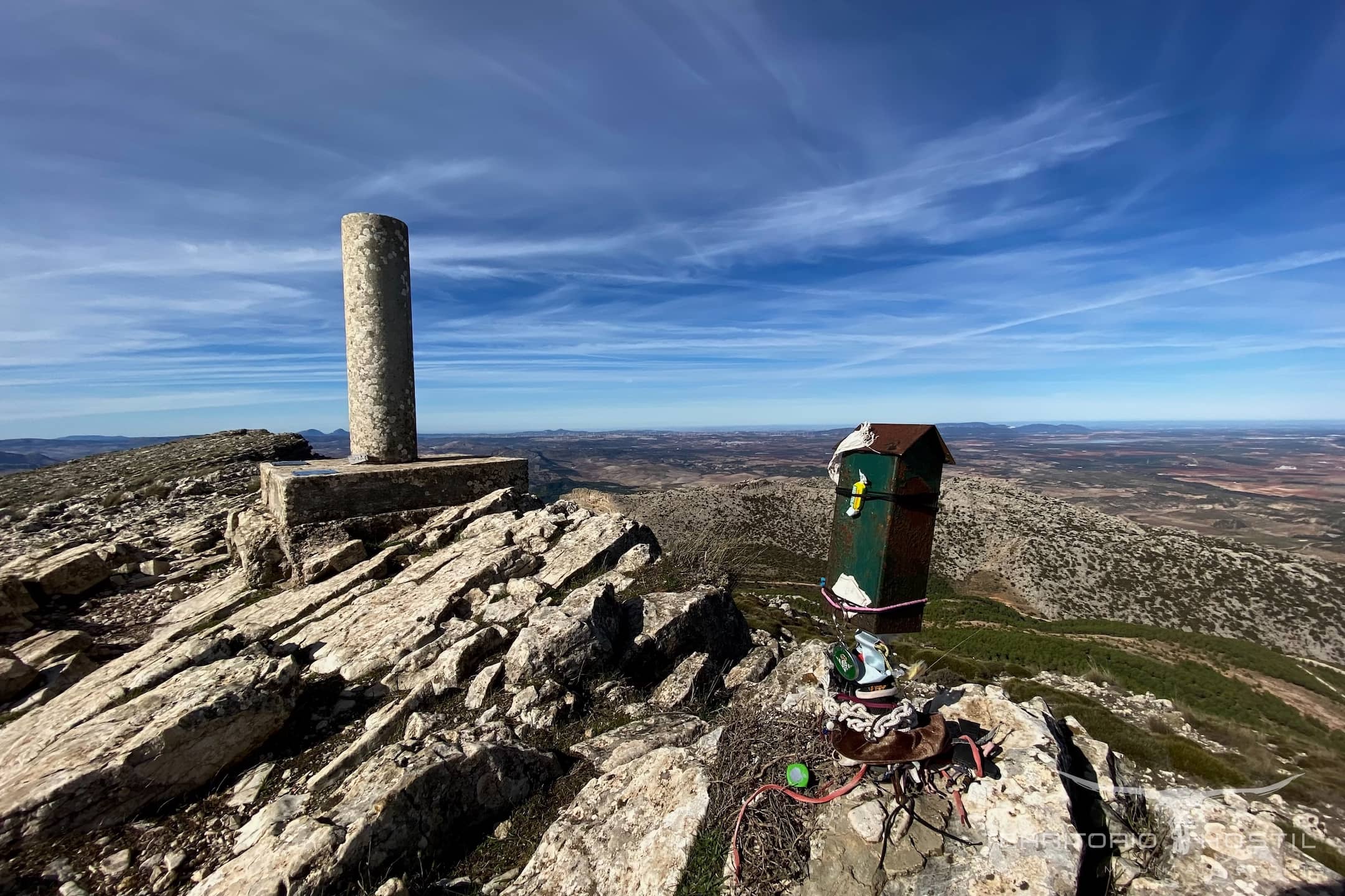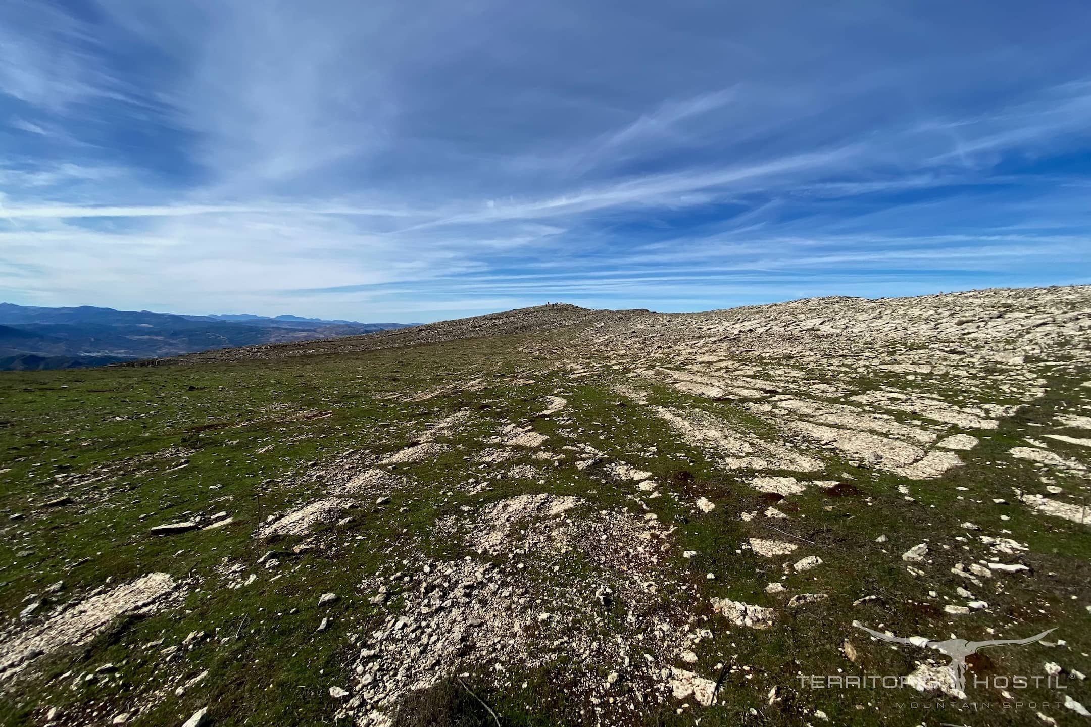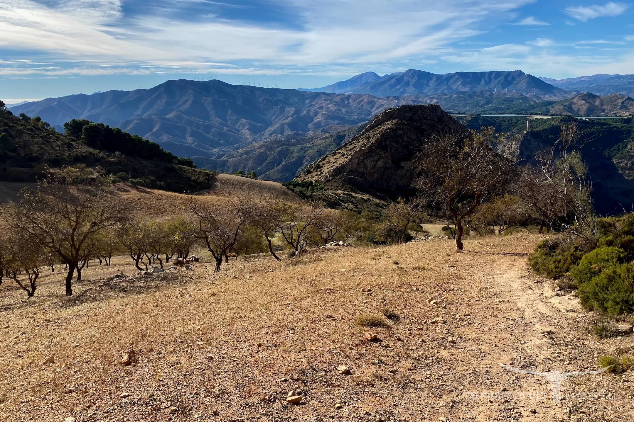 Siguiendo la cresta alcanzamos el vértice geodésico Huma de esta cima amesetada. Desde esta cota tenemos preciosas vistas al noreste de la vecina Sierra de Abdalajís, destacando su imponente Pico Capilla (1186 m.)