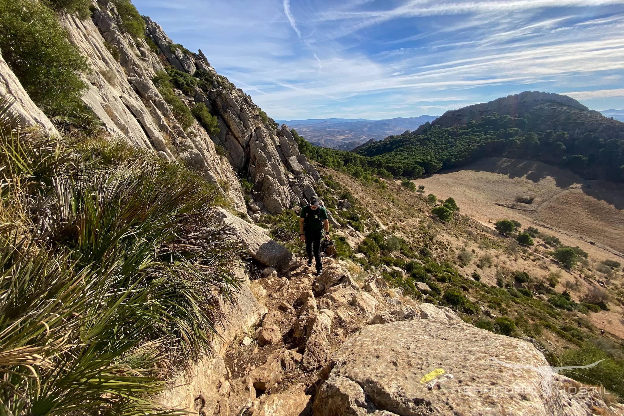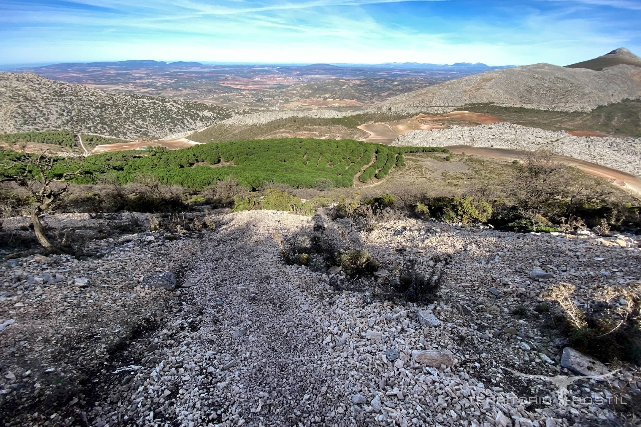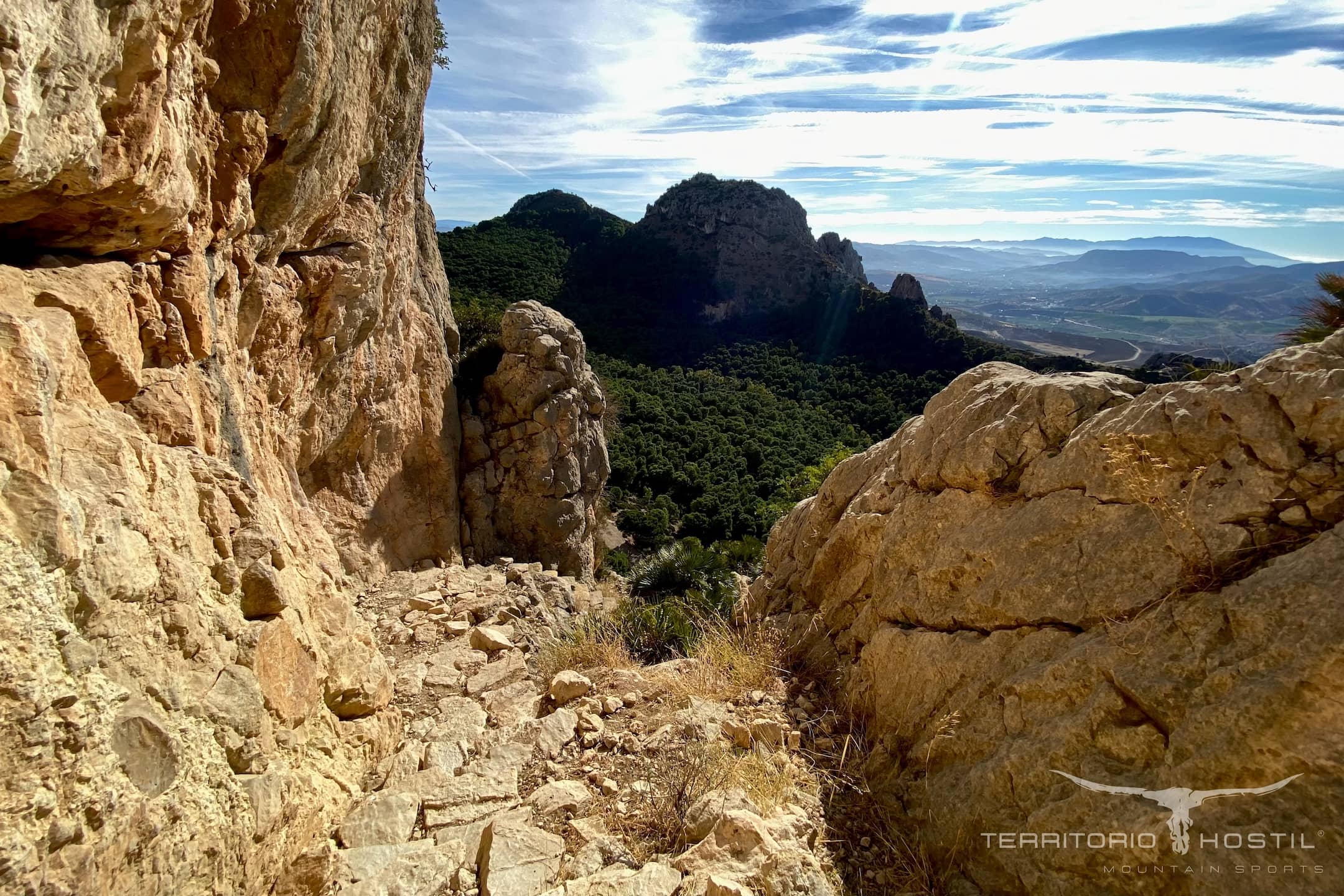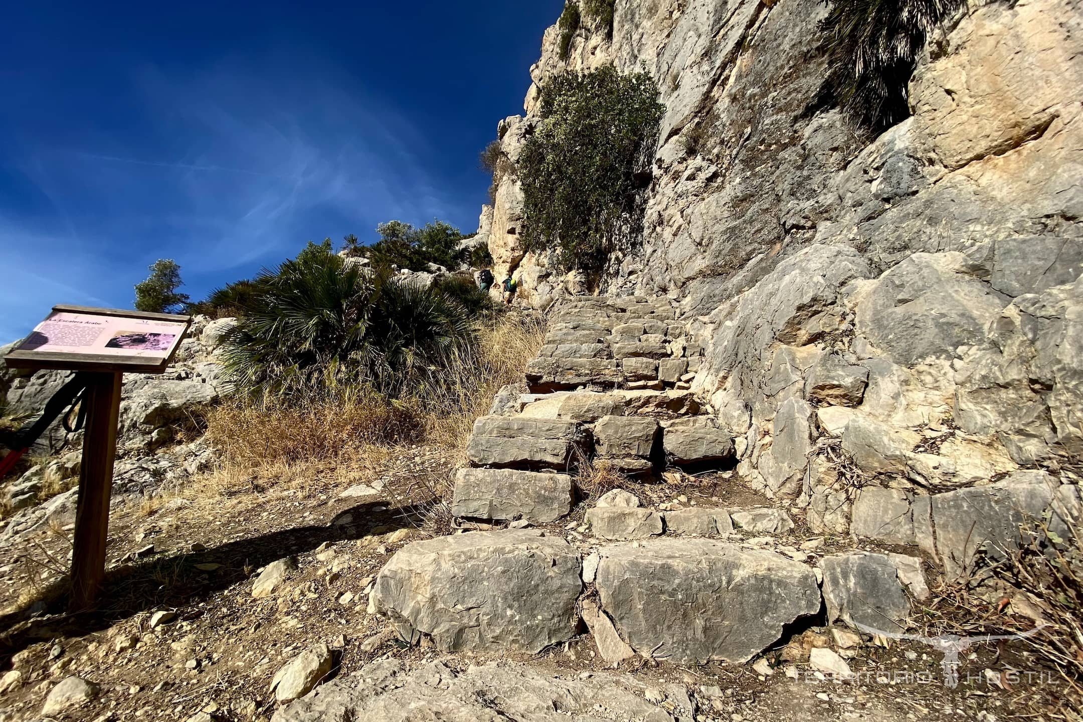 Tras ascender la Escalera Árabe y superar un collado con bonitas vistas del Corredor del Sabucón cambiamos el rumbo hacia el Tajo del Arrejanado por la falla de los palmitos.