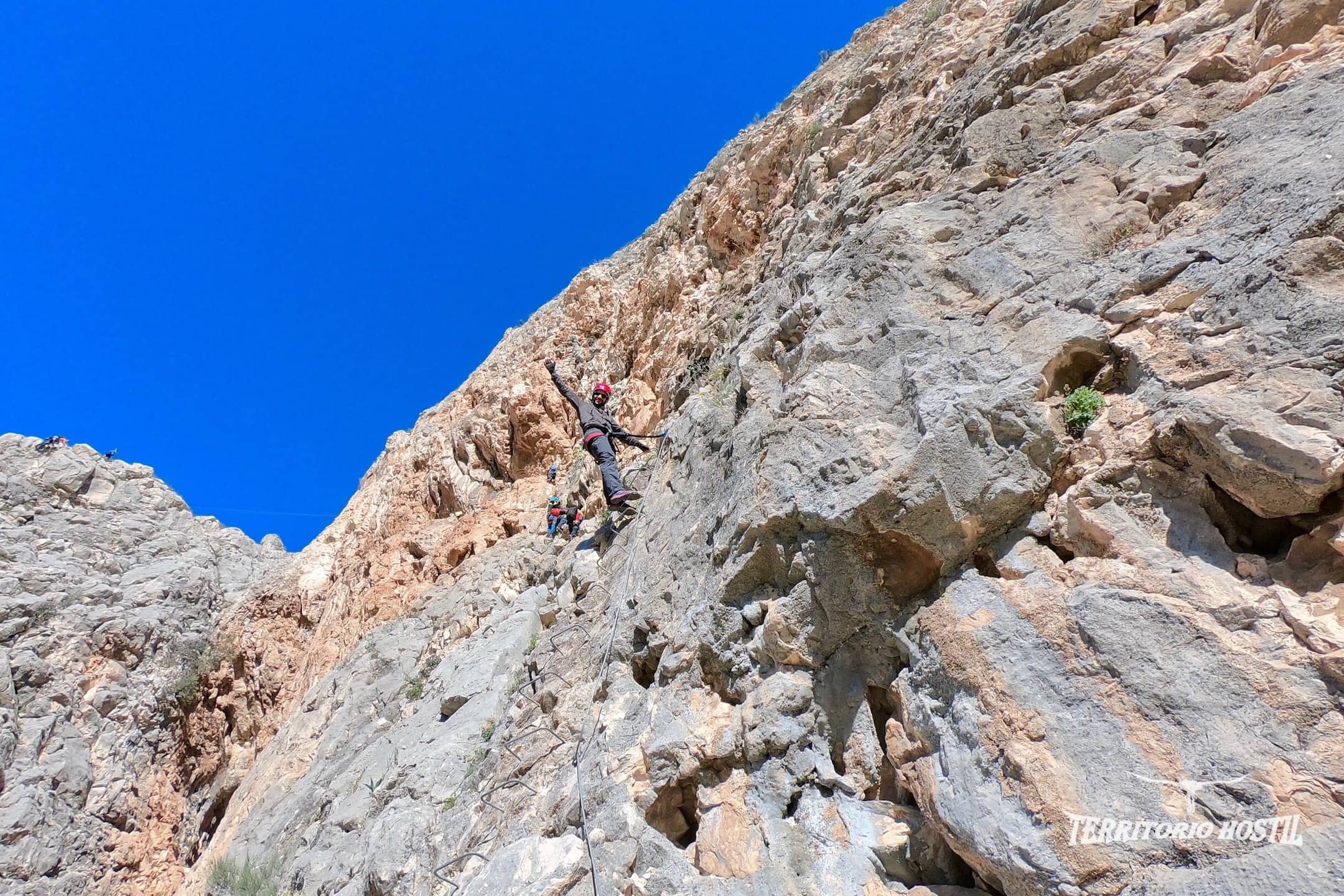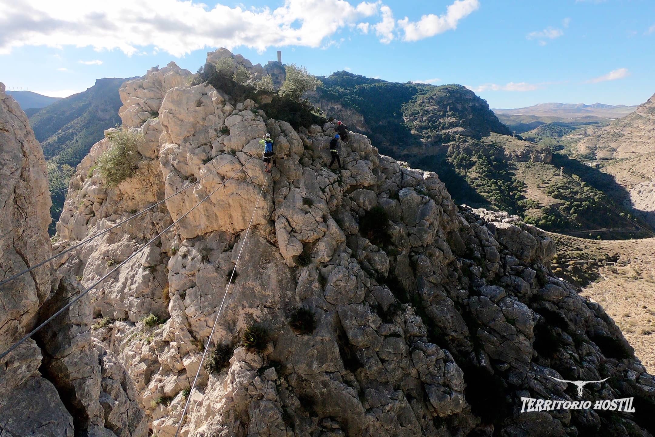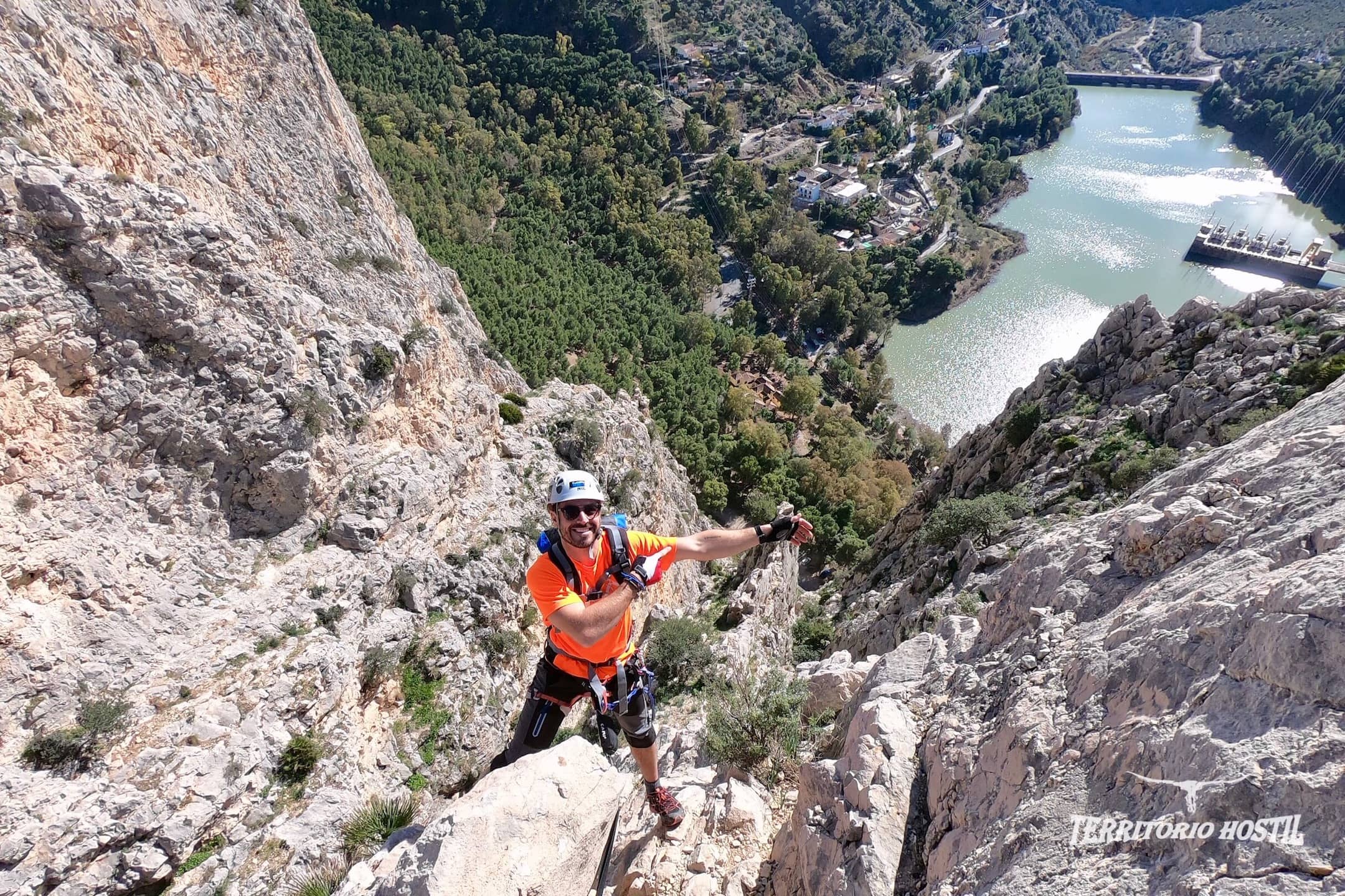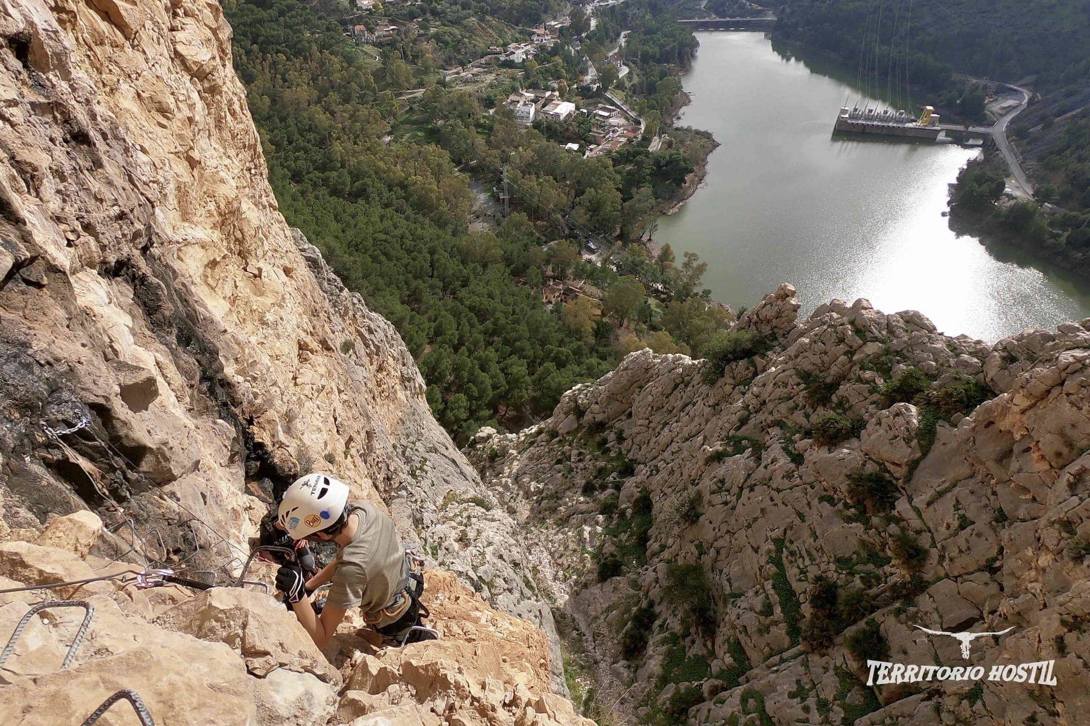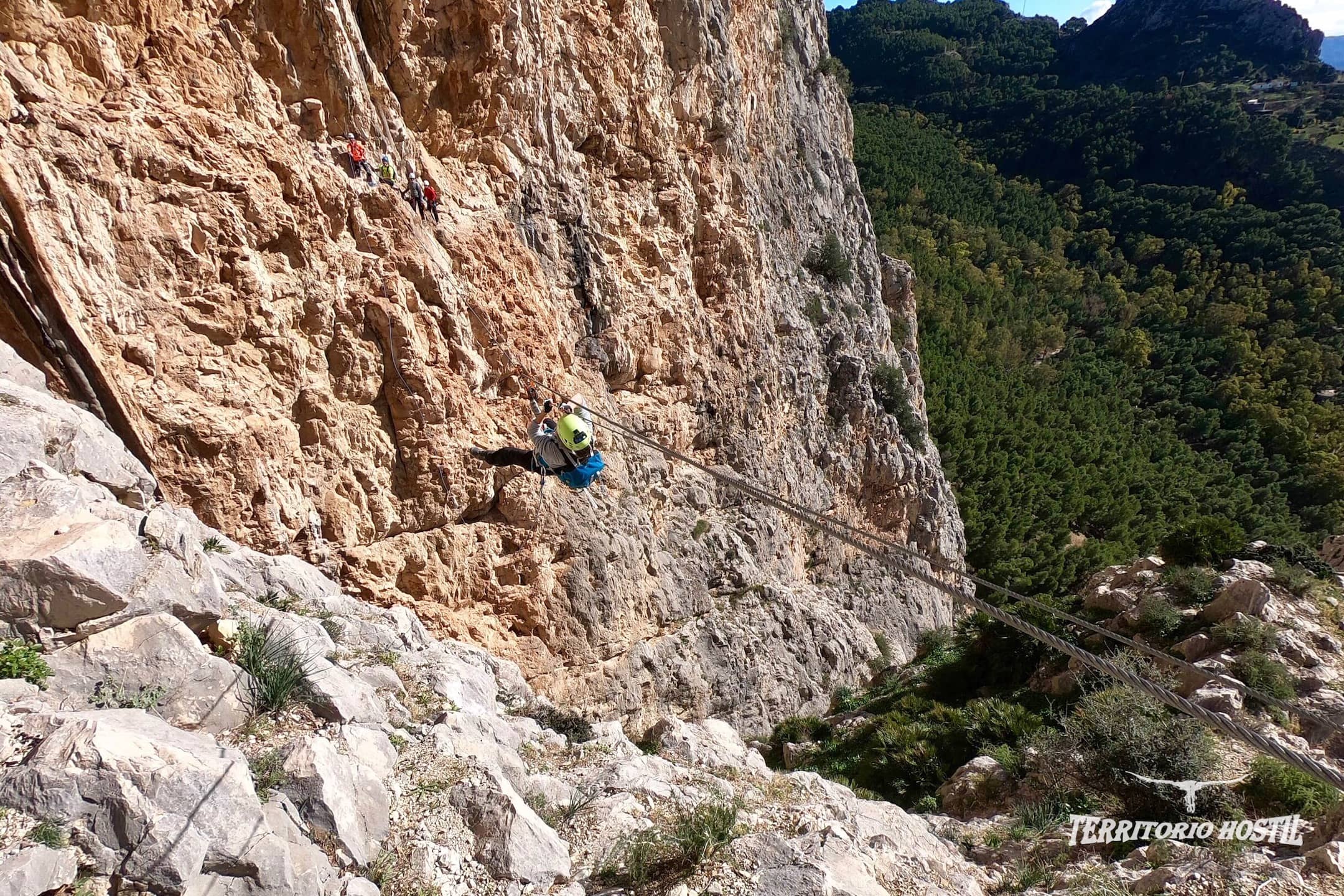 Situada al sur de la garganta del famoso Caminito del Rey, es una vía ferrata muy aérea, divertida y bastante completa ya que integra un puente tibetano, un puente de mono de 30 metros y una tirolina de 35 metros, además de la gran altura que cogeremos durante el recorrido.